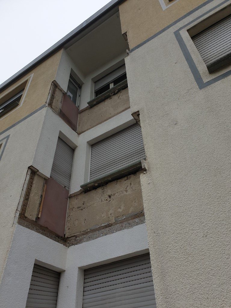 Die Fassade ist zum größten Teil fertiggestellt. Kanal- und Heizungsarbeiten sind beendet und die neuen Fertigbalkone werden gerade aufgestellt. Die neuen Balkone werden anschließend von einem Prüfstatiker abgenommen…