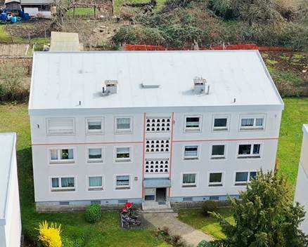 Ebenso in den Jahren 2015 und 2016 erfolgte die Modernisierung des Objektes Theodor-Heuß-Str. 3. Hier erfolgte ein Austausch der alten Fenster gegen neue dreifachverglaste Fenster, ebenfalls wurden hier die alten Balkone abgeschnitten und neue größere Balkone vorangestellt. Das Dach und die Kellerdecke wurden gedämmt. Alle neun Wohnungen haben ein neues Badezimmer erhalten. Auch hier haben wir die Außenanlage inkl. Parkplätzen neugestaltet. Am Ende der Maßnahme erfolgte noch der Neuanstrich des Treppenhauses. Es entstanden Kosten von ca. 605 T€.