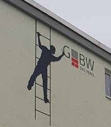 Auf den modernisierten Fassadenabschnitten und Balkonen ist das neue Farbkonzept gut zu erkennen. Dieses wird im Sommer 2012 nach Fertigstellung der vollständigen Fassadensanierung das komplette Erscheinungsbild dauerhaft verändern. Und mit dem weithin sichtbaren Logo der GBW im oberen Bereich zeigt unsere Genossenschaft Präsenz und Identifikation mit ihren Häusern am Niddablick. Denn in Kürze werden die gleichen Modernisierungen auch am Haus Niddablick 11 stattfinden.